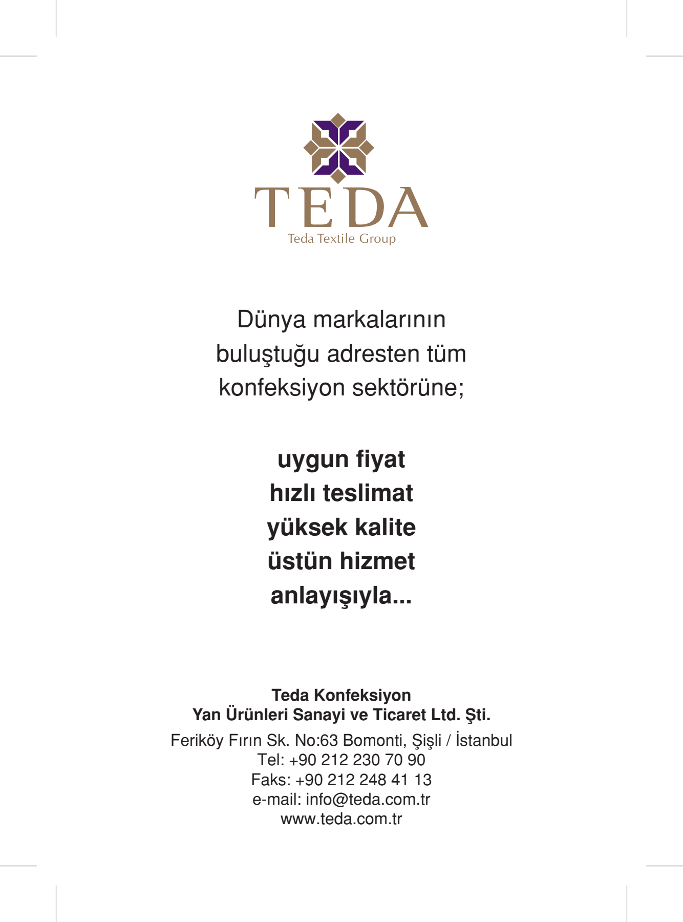 TEDA ilave katalog sayfaları bu bölümde kurumsal görsel arşiv olarak sunulur. Sayfalar yüksek çözünürlükte görüntülenebilir.